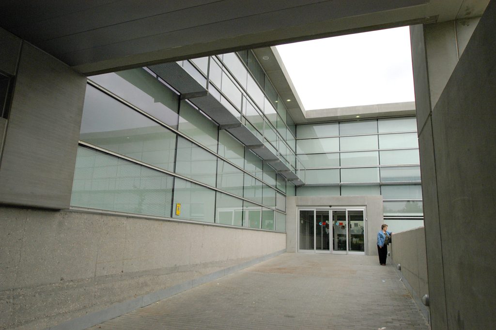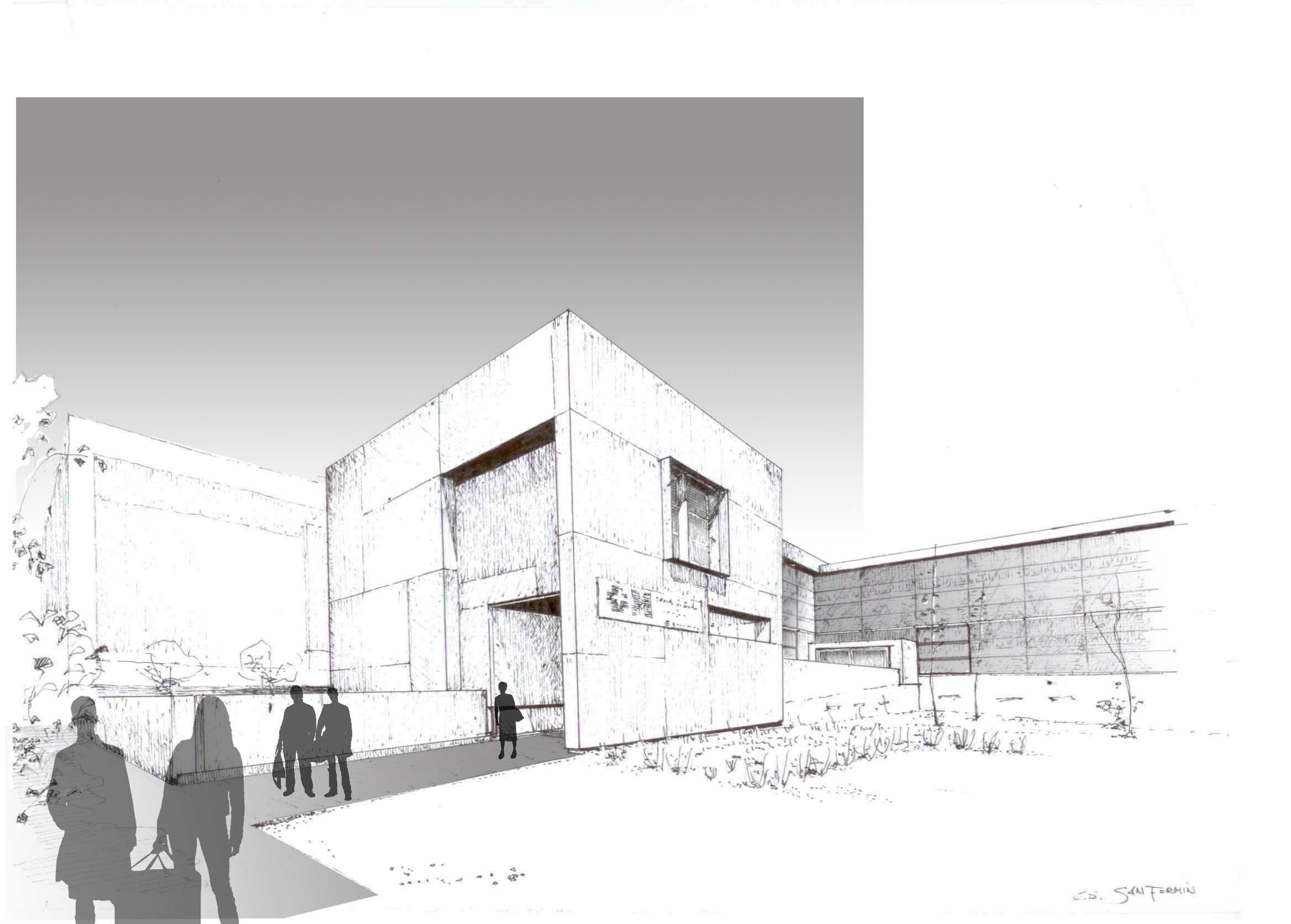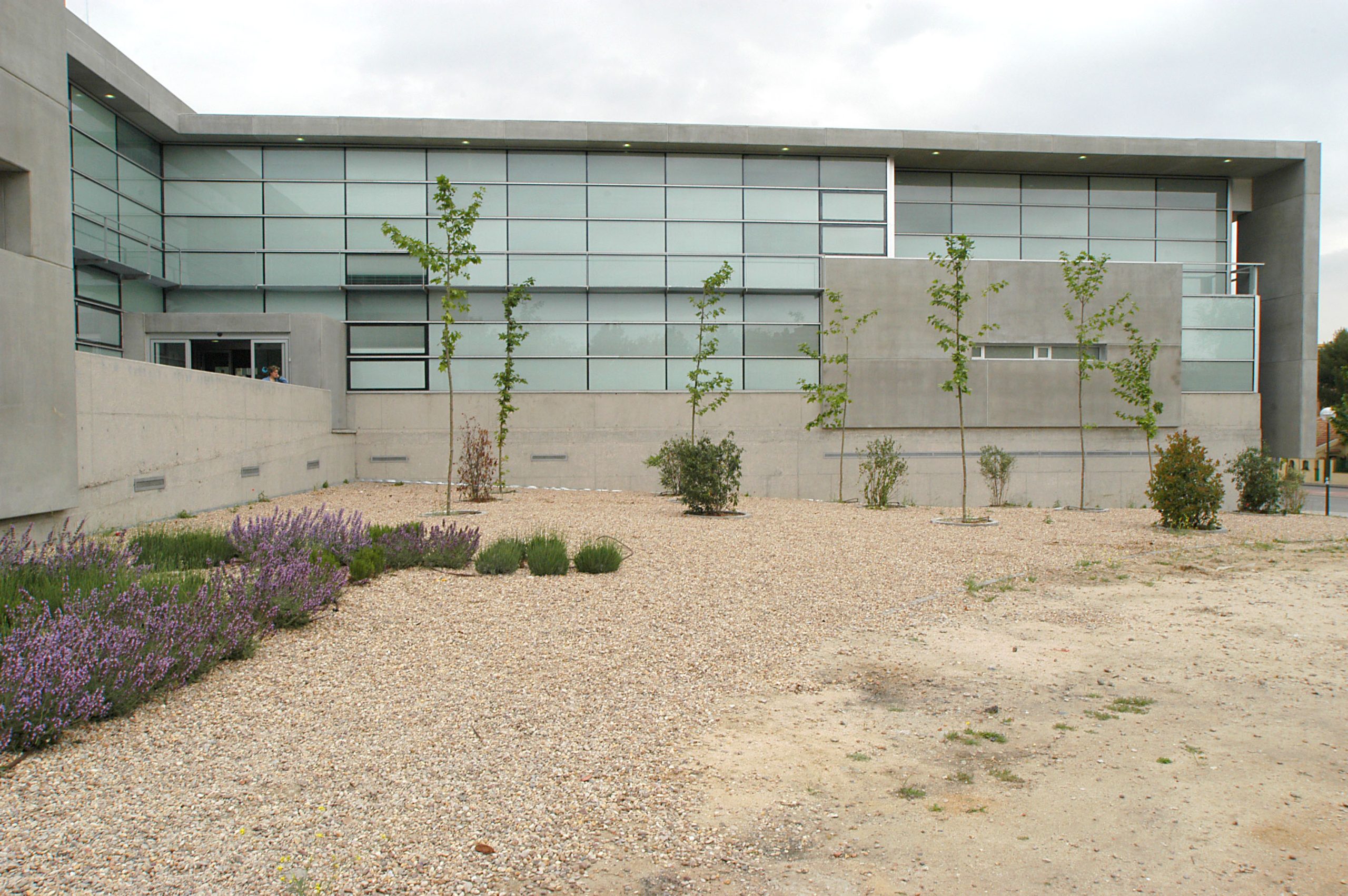 La parcela, su posición en el entorno urbano, geometría y topografía, han motivado en gran medida la propuesta. La ubicación en la trama urbana induce una solución abierta al sureste, hacia la plaza, sin cerramiento en perímetro de parcela, sobre un sólido basamento alto que aporta la seguridad necesaria frente al exterior. De esta manera la superficie no ocupada por la edificación se incorpora visualmente al sistema de espacios libres de la ciudad, como una zona ajardinada de transición.